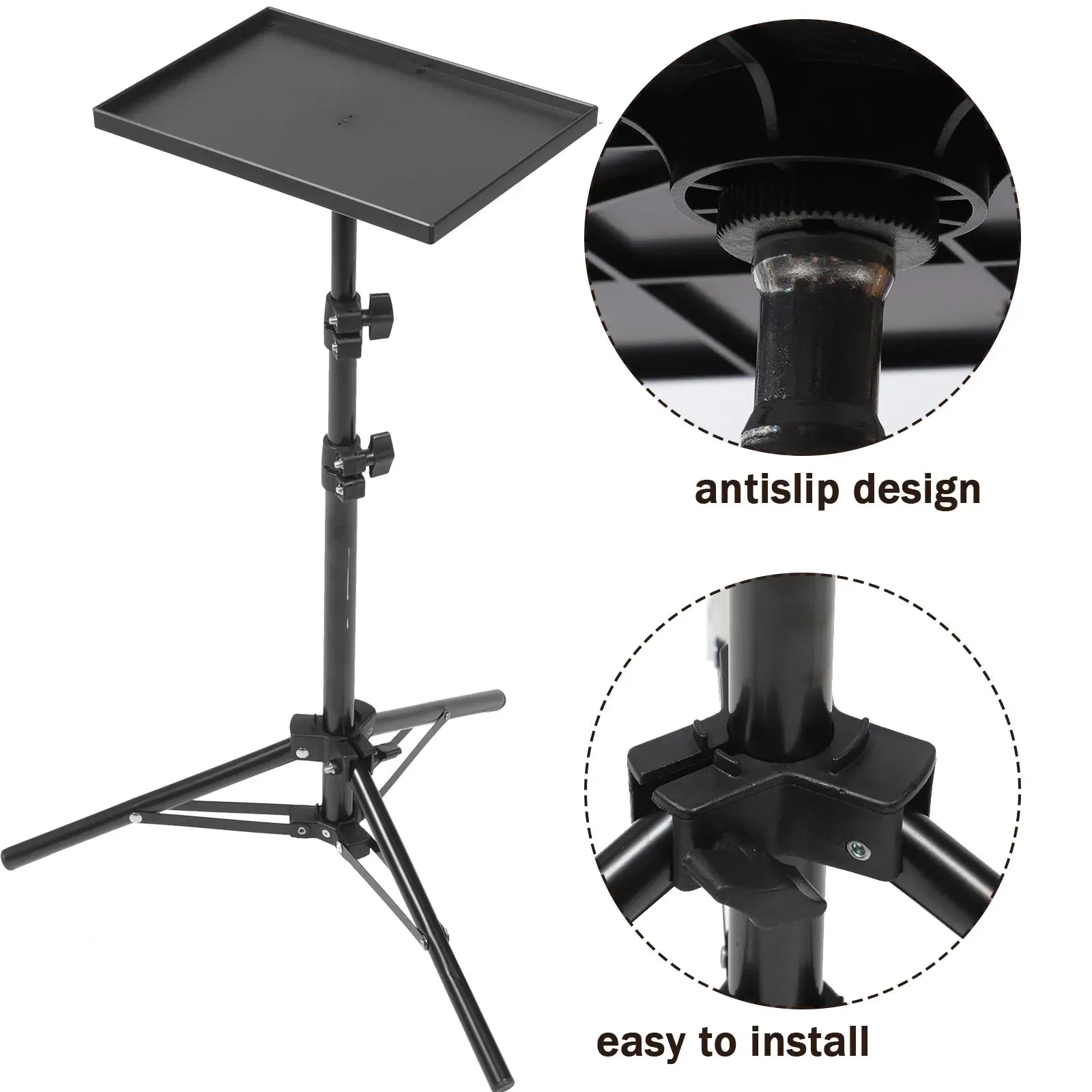 This versatile projector stand features a telescopic rod and sturdy tray design, allowing flexible height and angle adjustment. Ideal for projectors, laptops, and live streaming setups at home or in professional environments.